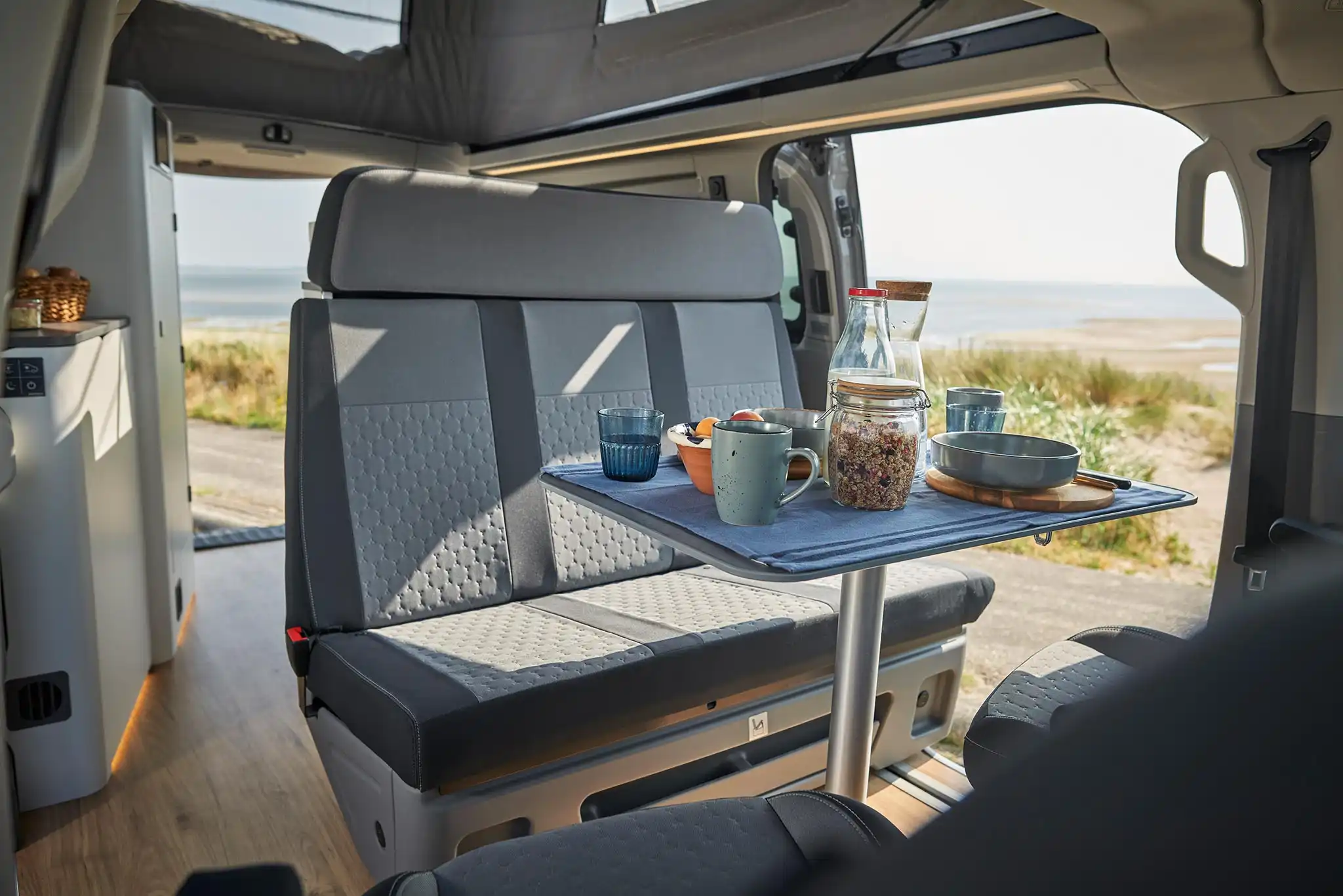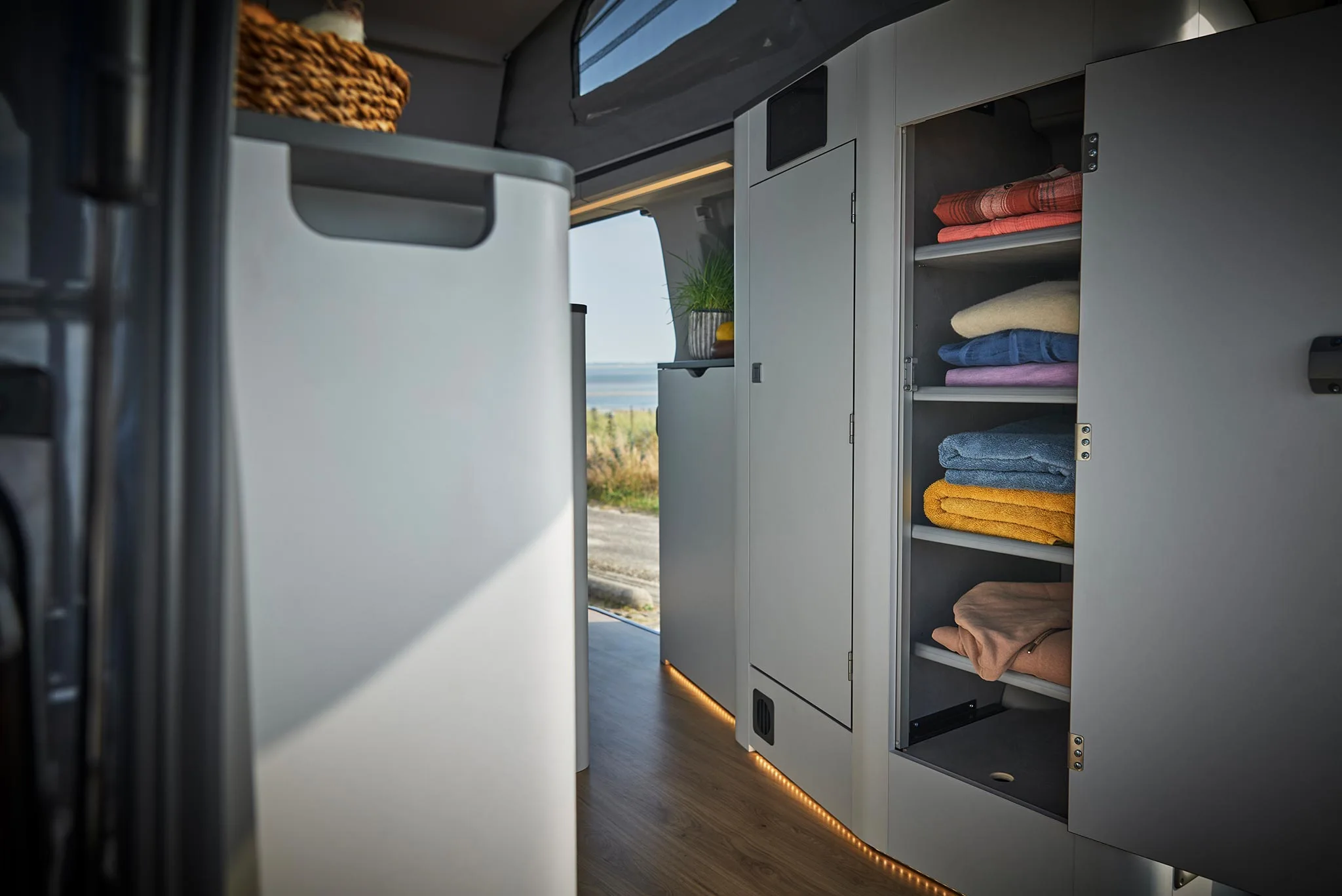 Der L2 eignet sich besonders, wenn du einen Camper suchst, der bei kompakten Außenmaßen maximale Autarkie bietet. Durch den längeren Radstand gewinnt der Innenraum an Flexibilität und bietet Platz für ein fest eingebautes WC sowie ein zusätzliches Waschbecken. Das Aufstelldach sorgt dabei für eine niedrige Fahrzeughöhe im Alltag und volle Stehhöhe am Zielort.